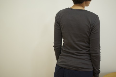 衿ぐりが5本のステッチで縫製されているので、きれいな丸首の状態が長く持ちます。