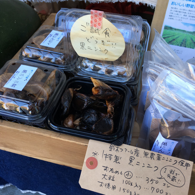 ほかにも塩や砂糖、野菜を使ったさまざまな加工品もあります。一口食べると疲れが吹き飛ぶ!?とリピーターも多い国産の〈黒にんにく〉。試食もありますよ♪