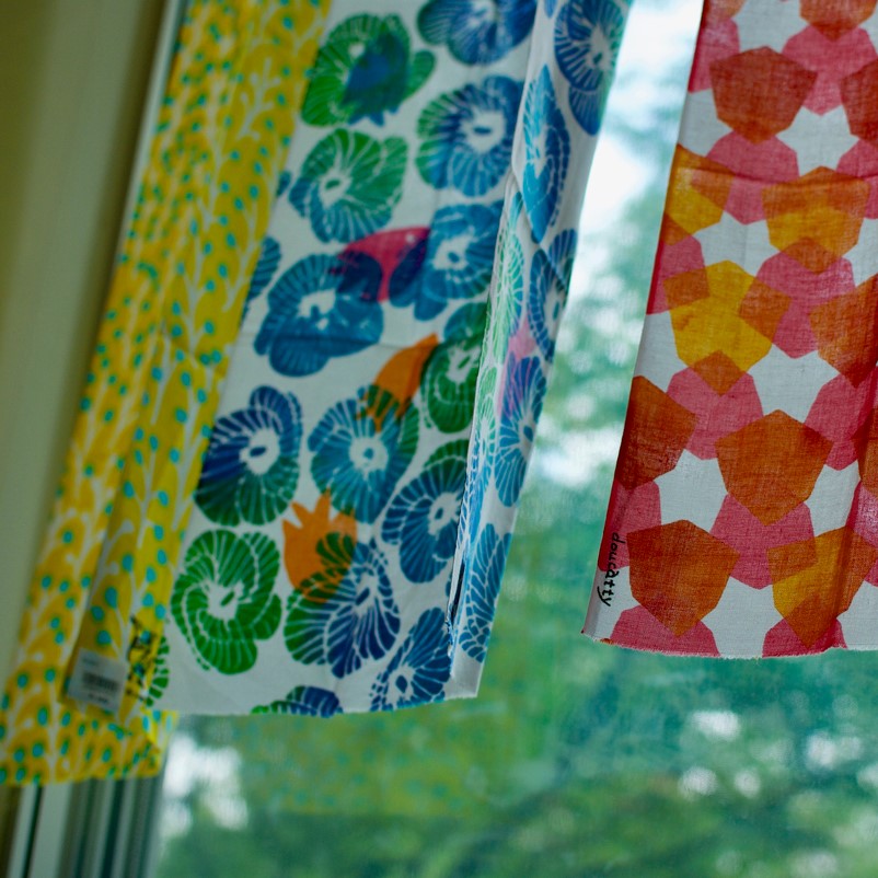 沖縄の風物や文化を図案に起こし、手捺染めで布を染め上げていく「Doucatty」の布たち。