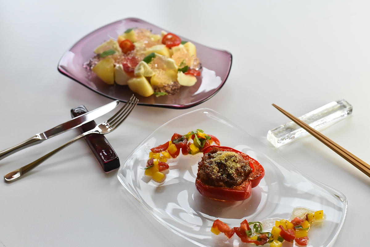 ディナーシーンでは【パプリカの肉詰めグリル】をメインに。