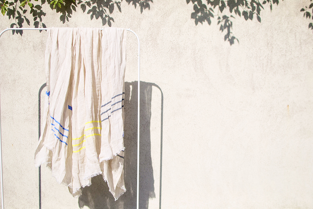 製造後に洗いをかけたリネン(ウォッシュドリネン)は、くたっと柔らかくさらりと優しい肌触り。大判サイズのものは今の季節はベッドカバーとして使用したり、マットに巻き込みベッドシーツとしても。ストールはラインカラーが春夏のコーディネートのポイントに。