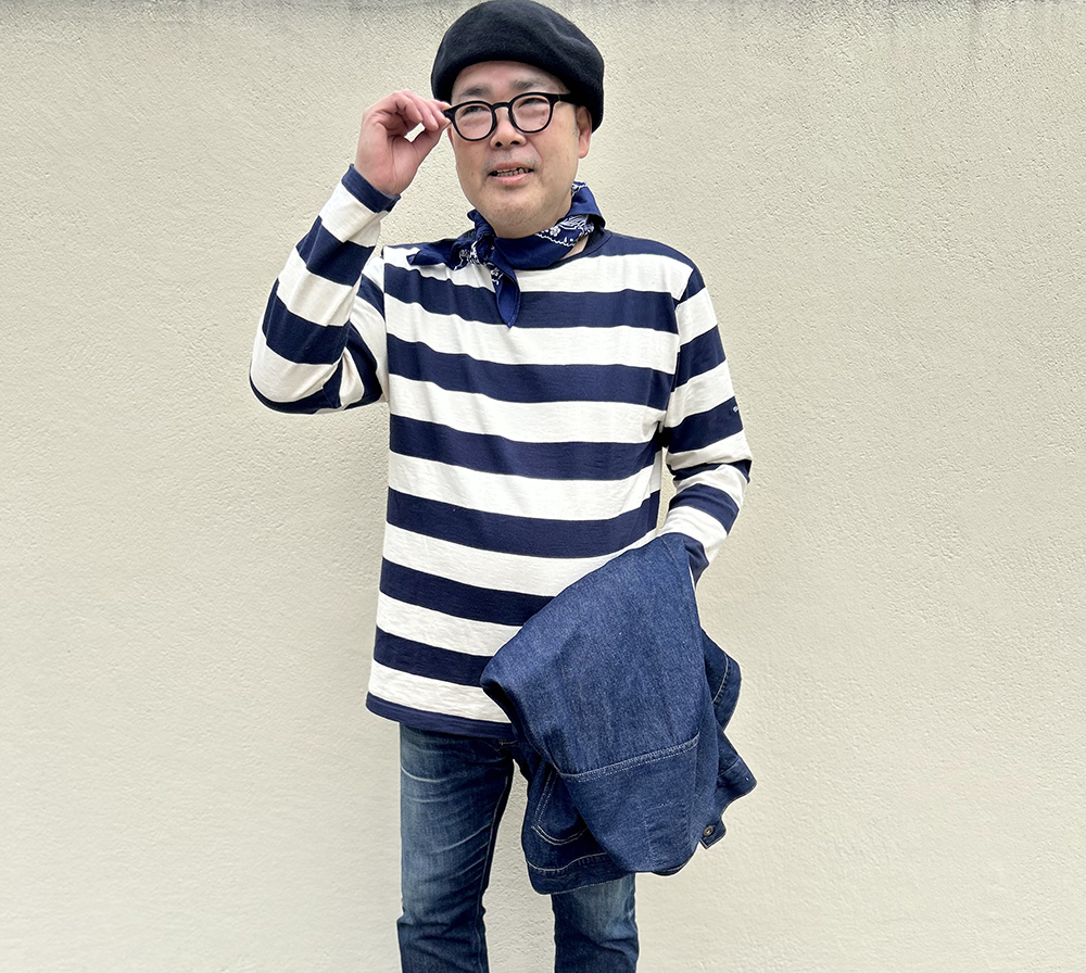 「以前からボーダーシャツに憧れはありつつ、どこか苦手意識があってなかなか手が出せずにいました。前回のPOP-UP STOREで、太ボーダーのバスクシャツを見たときに「これなら!」と感じて購入しました」