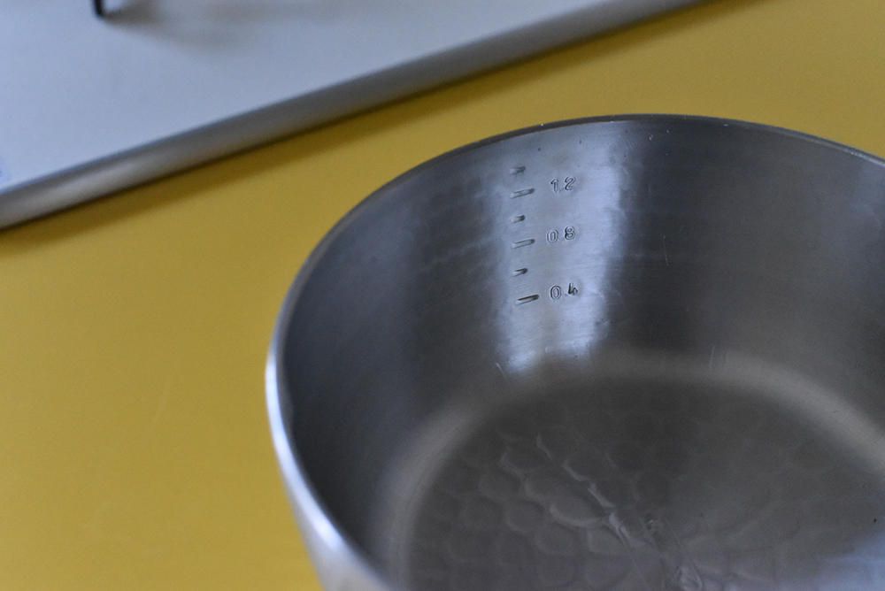 内側には容量がわかる目盛りがあり、お味噌汁など必要な人数分を作るのに目安になります。
