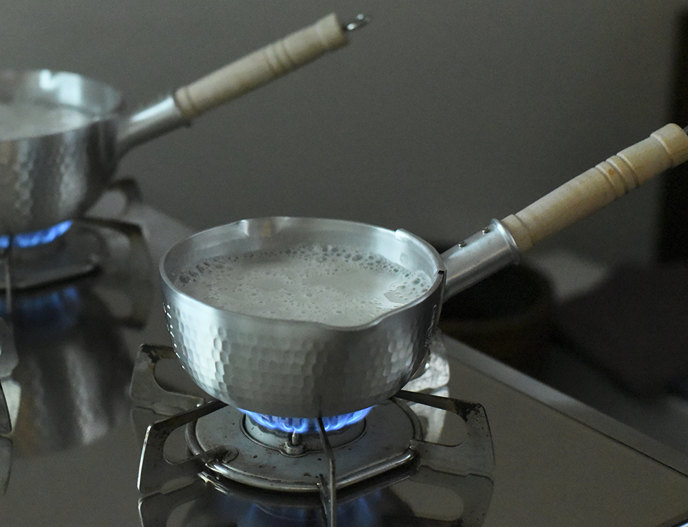 アルミ製の鍋は使い始めに米のとぎ汁や野菜くずを一度煮立てておくことで、内側に保護膜を作り、黒ずみなどの変色を防げます。