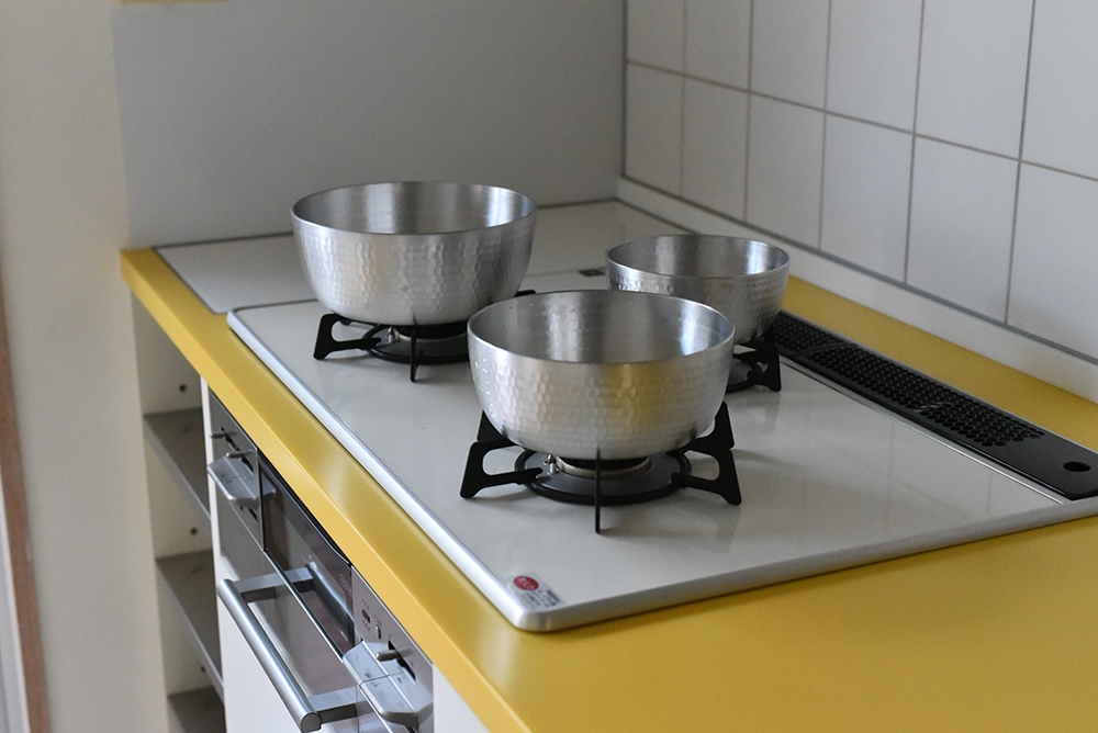 さらに日本初の大型ドローイングプレスを導入。ゆっくり時間をかけて鍋を成形することで板厚が均一に形成され、耐久性が高くなり、熱伝導のよい調理器具が作られるそうです。