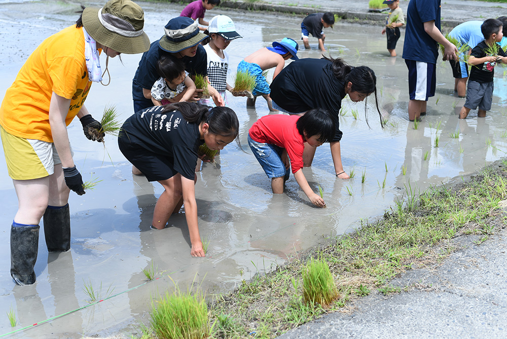 黙々と植える子、走り回る子、泥の感触を楽しむ子…みんな思い思いに田んぼと仲良くなっていきます。