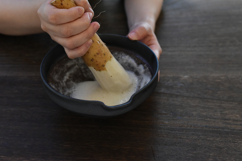 なるべく短時間で擦りたい山芋も力を入れ過ぎず素早く擦ることができます。左右どちらの方向に回してもしっかりとくし目に当たりなめらかな仕上がりに。口付きなのでごはんに直接かけるのも楽。