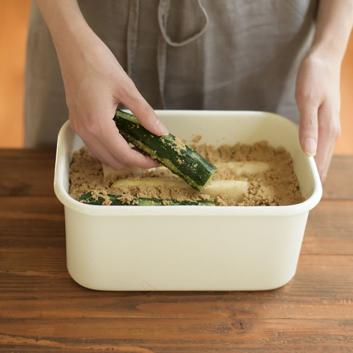ぬか漬け作りは意外と簡単です。琺瑯容器なら、匂いうつりや汚れも気になりにくく、初心者にもおすすめです。